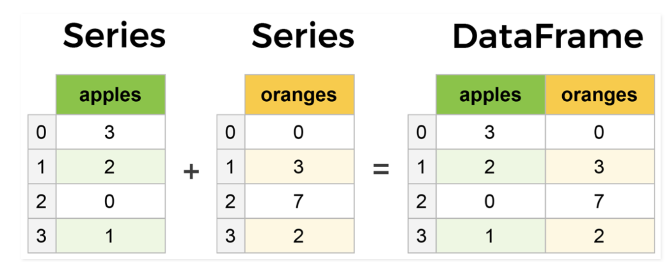 A Series is essentially a column, and a DataFrame is a two-dimensional table made up of a collection of Series